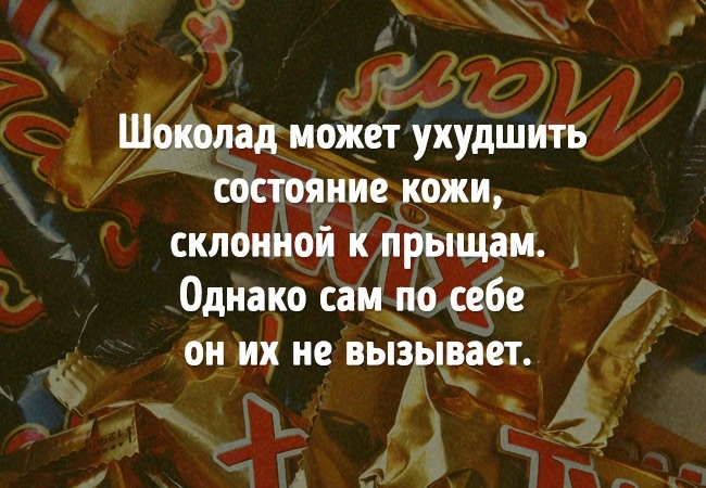 Всі чули, що з-за шоколаду на обличчі можуть з'являтися прищі, а випадково ковтнув жуйка може перебувати в травному тракті роками. Але чи так це насправді?
