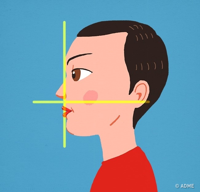 Асиметричним може бути випирає і скошене підборіддя. За результатами дослідження, такий підборіддя зустрічався у кожного 4-го «піддослідного». Слабка асиметрія не видно неозброєним оком, звичайно, якщо ви не лікар-ортодонт. Але є способи себе перевірити. Так, у вас асиметричне будова щелепи, якщо: