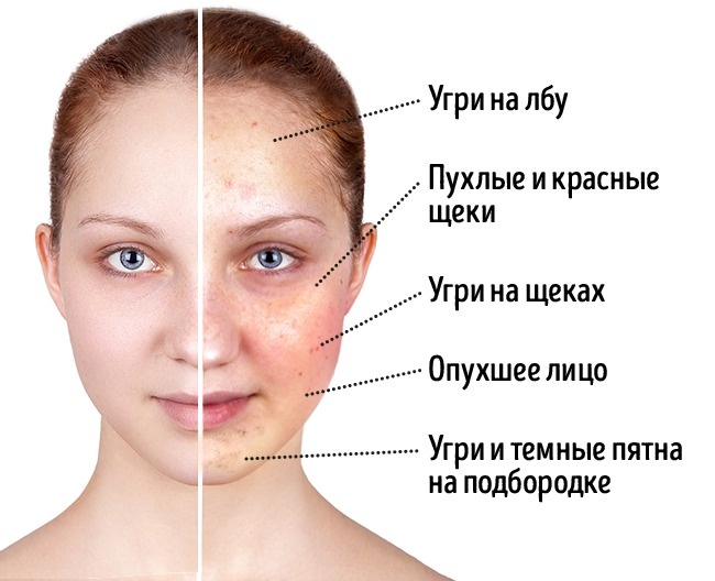 Перед тим як з'їсти ще одне печиво або випити зайвий келих вина, подумайте, що ваш раціон може вплинути не тільки на тілі у вигляді зайвої ваги, але і на обличчі.