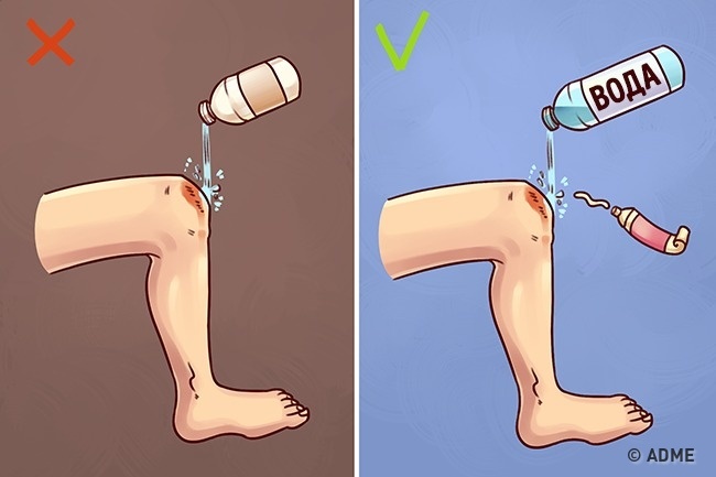 Як треба: промити рану чистою питною або кип'яченою водою, нанести заживляющую мазь з антибіотиком. Пластир і бинт не потрібно накладати без необхідності, інакше рана буде мокнути і довше гоїтися.