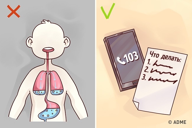 Як треба: при підозрі на отруєння потрібно викликати швидку допомогу, описати симптоми і можливе джерело отруєння, записати рекомендовані лікарем дії. Не варто самостійно оцінювати ступінь небезпеки і шукати поради в інтернеті — передозування вітамінами або алкогольне отруєння може бути не менш небезпечним, ніж залпом випитий стакан бензину. Без допомоги лікаря смерть може наступити протягом години.