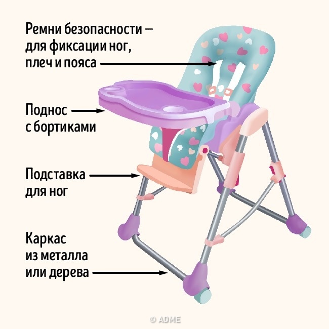 - Якщо конструкція стільчика не передбачає ремені безпеки, купіть їх окремо. Механізм кріплення повинен бути максимально простим: чим складніше, тим рідше ви його будете використовувати.