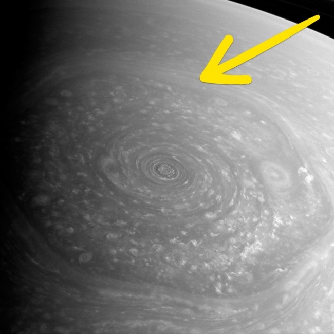 Атмосферний феномен на планеті Сатурн — геометрично правильний шестикутник з поперечником в 25 тис. км. По всій видимості, шестикутник, є досить незвичним вихором.
