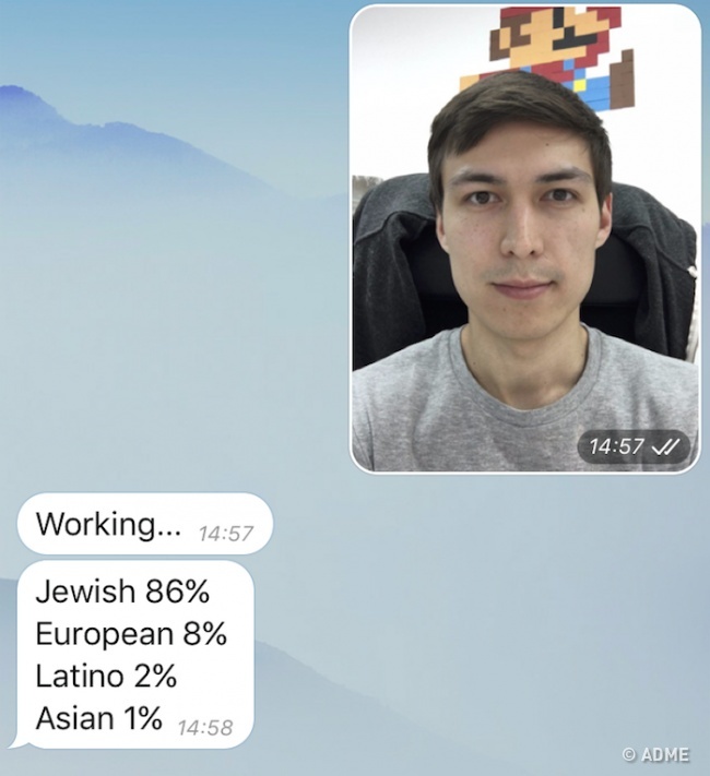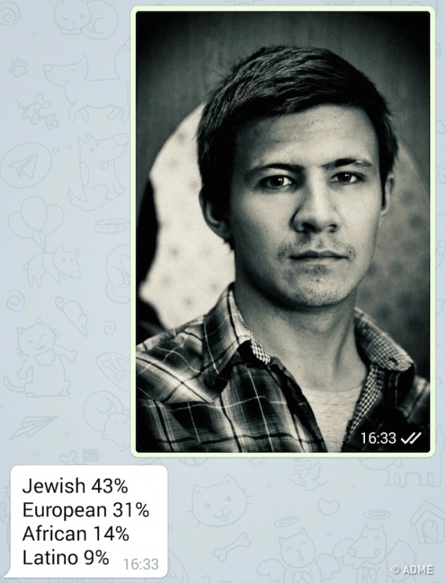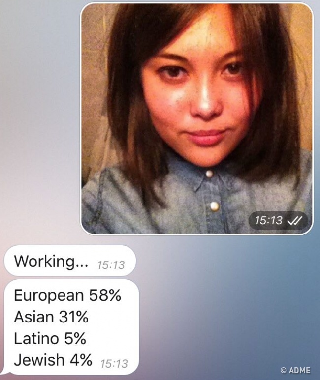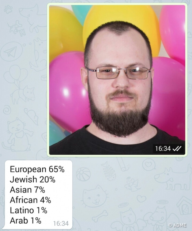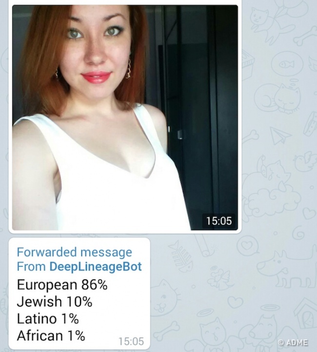 У мережі набирає неймовірну популярність робот додатки Telegram, який визначає расове походження людини, — @DeepLineageBot. Все, що потрібно, — це надіслати свою фотографію і отримати цікавий розрахунок. Сам робот стверджує, що він, звичайно, старається, але все ж не варто ставитися до його результатів всерйоз — це, швидше, жарт.