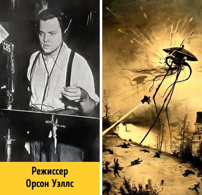 У 1938 році режисер Орсон Уеллс поставив радіоспектакль за романом «Війна світів» Герберта Уеллса про напад марсіан на Землю.