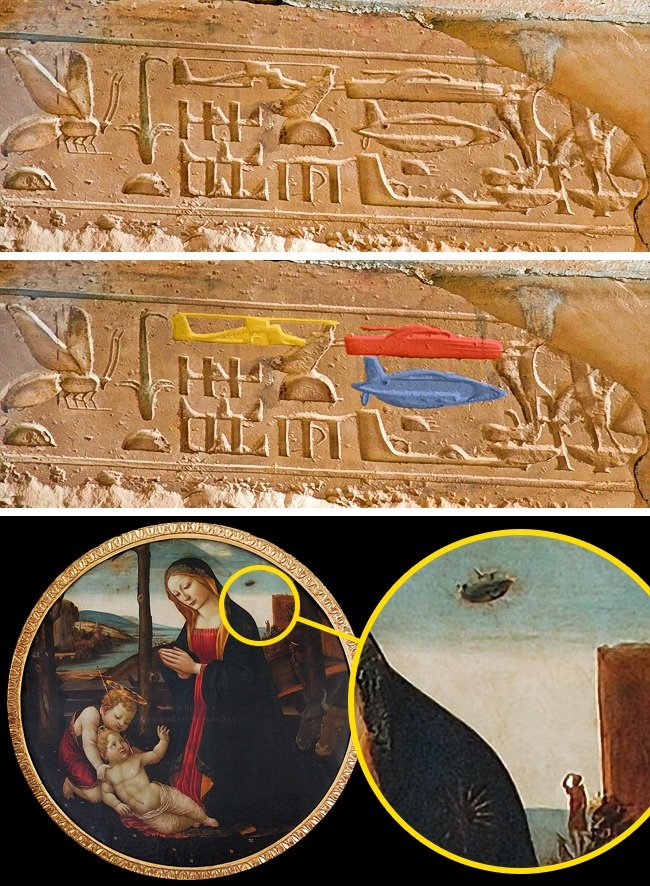 Єгипетські ієрогліфи, знайдені в храмі Мережі I в Абідосі мають дуже дивний вигляд. Вони зображують щось схоже на вертоліт, дирижабль і підводний човен. Ця знахідка викликала багато суперечок серед єгиптологів і археологів, які до цих пір так і не знайшли наукового пояснення.