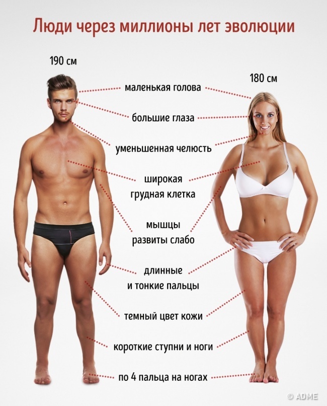 - Пальці на ногах. Їх наші предки використовували для лазіння по деревах. В ряду від австралопітеків до нас пальці помітно коротшали, очевидно, що це не межа. Ймовірно, їх кількість теж зменшиться. Наземні тварини завжди приходять до зменшення їх кількості, і рекордсменом тут є кінь. (Джерело: antropogenez)