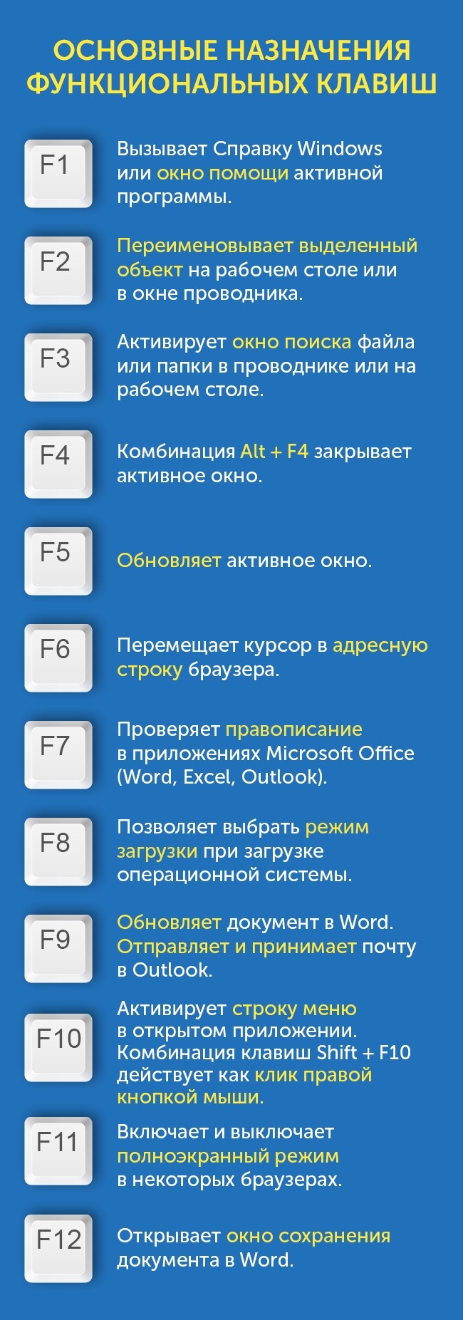 Клавіші від F1 до F12, відомі як функціональні клавіші, що знаходяться у верхньому рядку клавіатури зовсім не для краси. Вони дозволяють значно спростити виконання багатьох операцій, заощадити час і підвищити ефективність роботи.