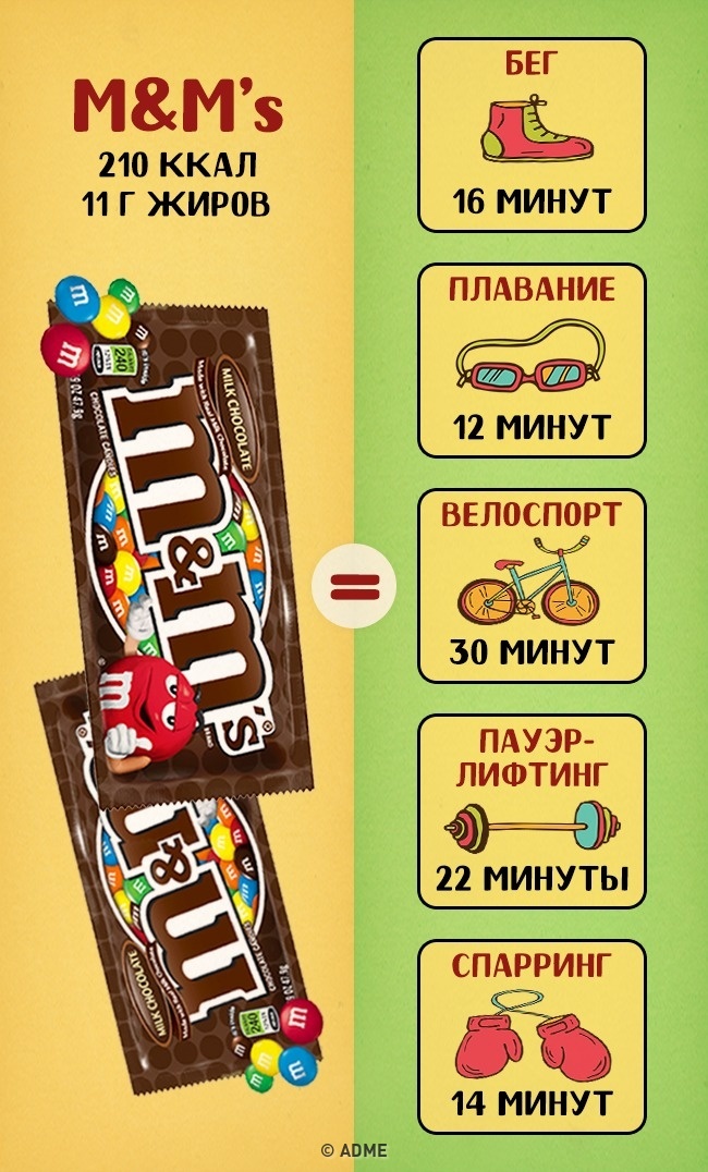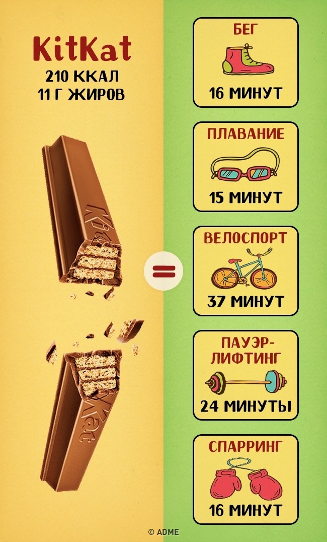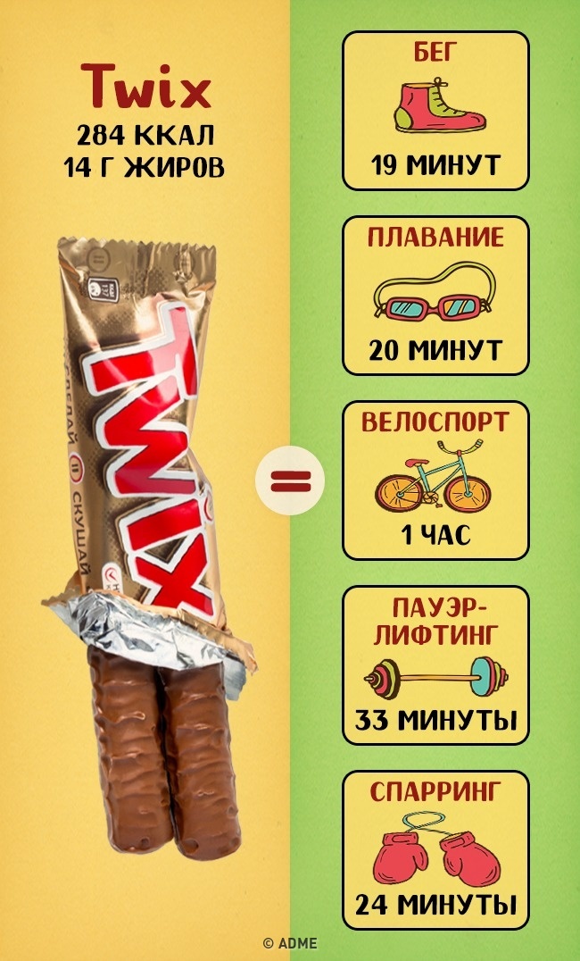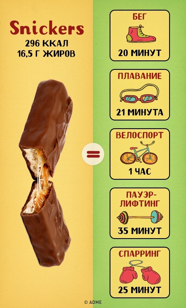 Social.org.ua зібрав корисну інформацію про те, скільки часу потрібно займатися спортом, щоб витратити калорії після з'їдених смачненького.