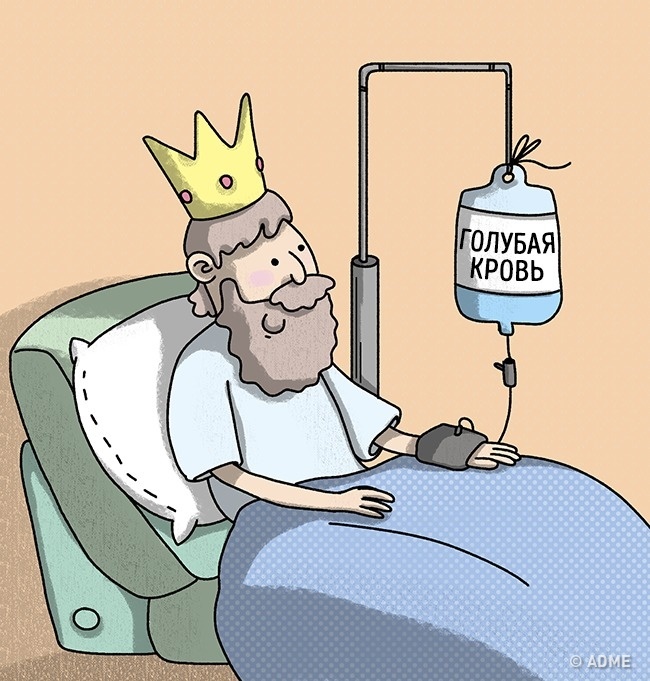 Кров без кисню, що йде по венах до серця, зовсім не блакитна, вона темно-червона. У шкільних підручниках її малюють синім кольором для контрасту. А ось вени, що просвічують через шкіру, здаються синіми з-за заломлення світла.