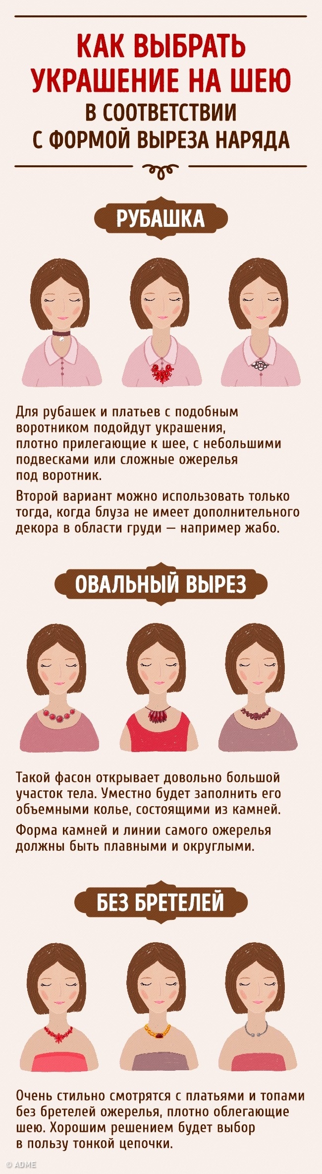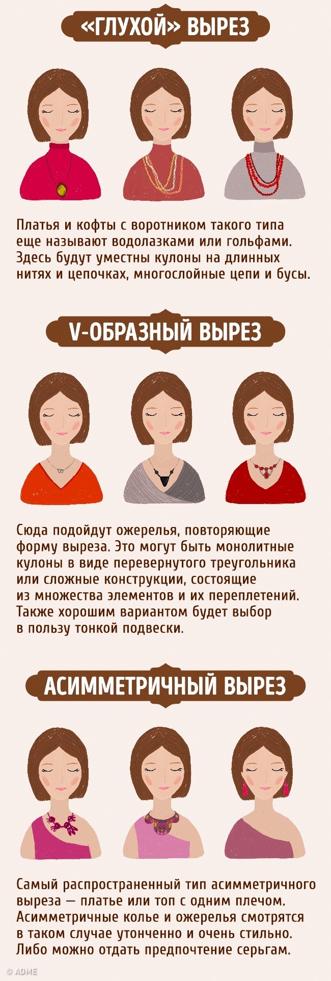 Дівчатам з усіма цими декольте і комірцями буває легко заплутатися, яке намисто, кулон або намисто краще вибрати. Та ж проблема стосується і сережок.