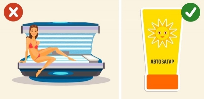 Це твердження не застосовується ні до засмаги в солярії, ні на пляжі — ніде! Якщо ви бажаєте придбати красивий шоколадний тон шкіри, найбезпечніше використовувати автозагар.
