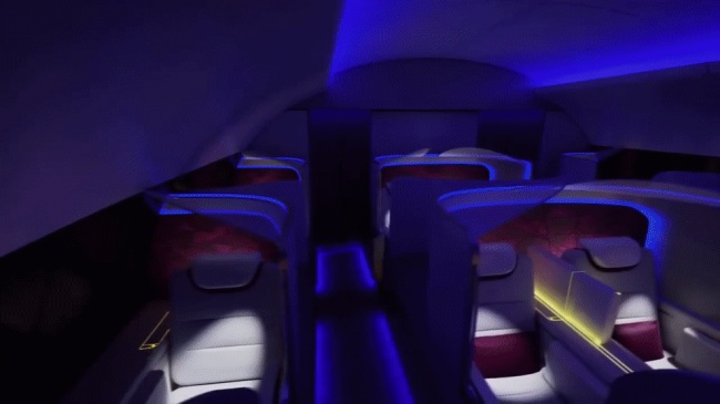 Літати в літаку буває нестерпно нудно, особливо якщо летіти далеко і довго. Цим керувалася компанія BOEING і вирішила випускати літаки, обладнані екранами на стелі і підлозі. Це дозволить проектувати на них нічне небо або хмари. Заходячи в салон такого літака, хочеться сказати «Вау!»