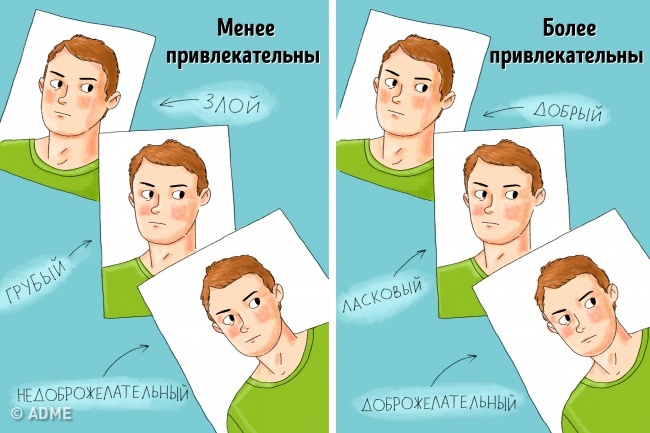 У китайському дослідженні 2014 року добровольцям запропонували оцінити фотографії людей з нейтральним виразом обличчя, але з різними емоційними підписами. Було встановлено, що недоброзичливо налаштовані люди найменше подобаються оточуючим.