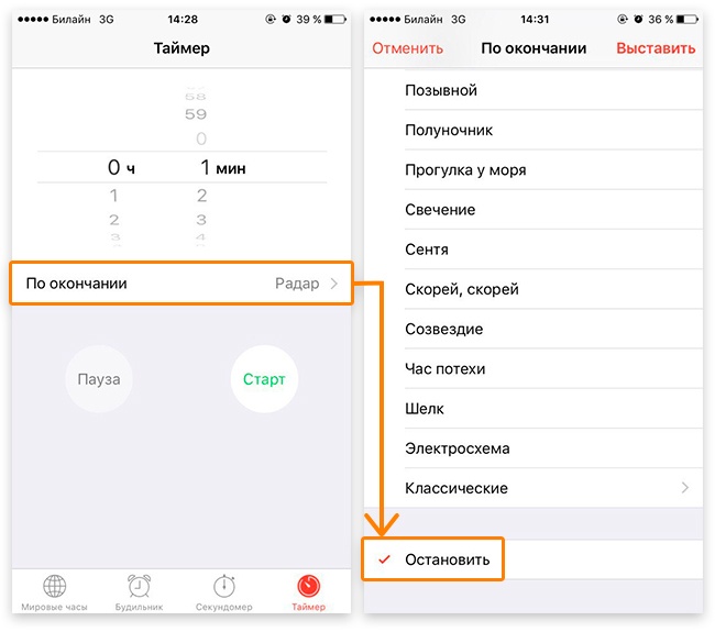 Тепер перед сном ви зможете насолоджуватися улюбленими мелодіями без турбот про те, як не заснути і залишити грає музику на всю ніч. Просто заведіть на потрібний вам час таймер, який знаходиться на вкладці «Годинник». В розділі «Після закінчення» замість заданого рінгтона обираєте пункт «Зупинити» і засинаєте. Всю іншу роботу ваш телефон зробить за вас. Справжня знахідка для любителів аудіокниг!