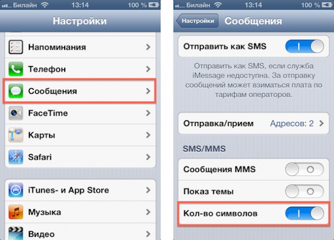 Для того щоб вручну не займатися підрахунком символів, використовуваних в повідомленні, увімкніть iPhone стандартну функцію лічильника: