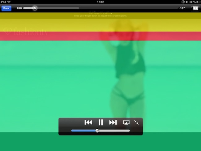 Ви можете змінити швидкість перемотування, переміщаючи повзунок. Так, жовта область використовується для швидкого перемотування, червона перемотує в два рази повільніше, а зелена робить це ще довше.