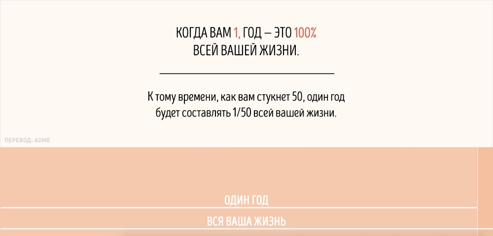 Іншими словами, чим довше ми живемо, тим коротше здається кожен рік щодо всієї нашої життя.