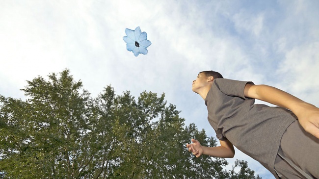 Знадобляться: щільний поліетиленовий пакет або легкий матеріал, ножиці, тонкі мотузочки, будь-яка невелика іграшка, яка буде виступати в ролі парашутиста.