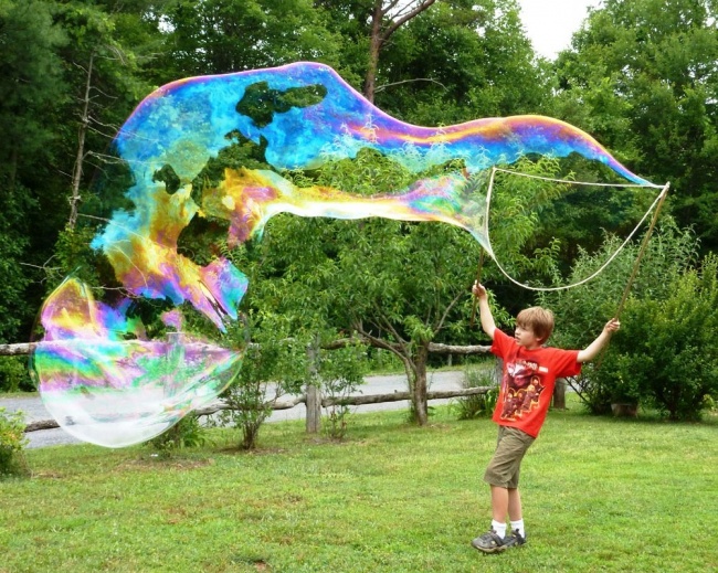 Якщо на вулиці похмуро і підвищена вологість, немає сенсу сумно дивитися на небо в очікуванні сонечка. Можна зайнятися створенням гігантських мильних бульбашок. Їм така погода подобається найбільше.