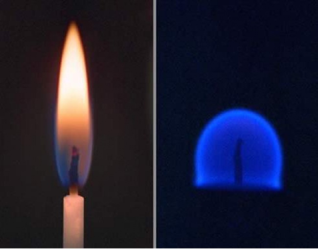 - Зліва — свічка горить на Землі, а праворуч — в невагомості, на станції «Мир».