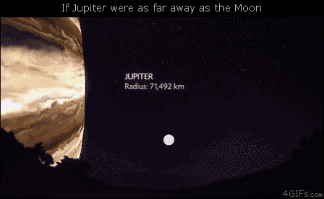А так виглядав би Юпітер для нас, якби знаходився на тій же відстані, що і Місяць.