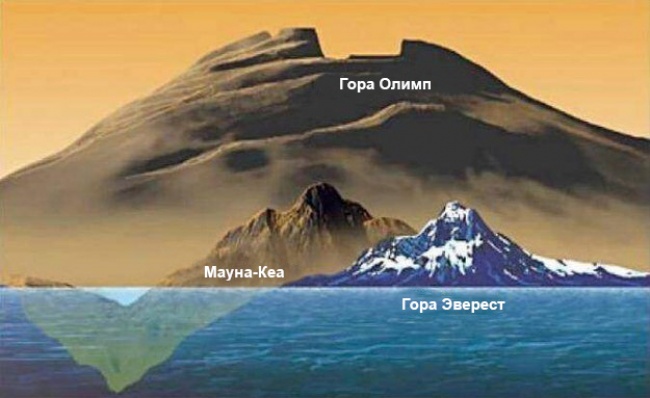Одна з вершин на Марсі — гора Олімп. Еверест порівняно з нею немов маленька дитина.