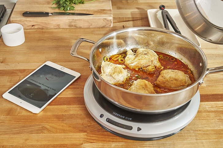 Розумна індукційна пальник автоматично регулює температуру нагрівання спеціальної сковороди згідно з рецептами з програми.
