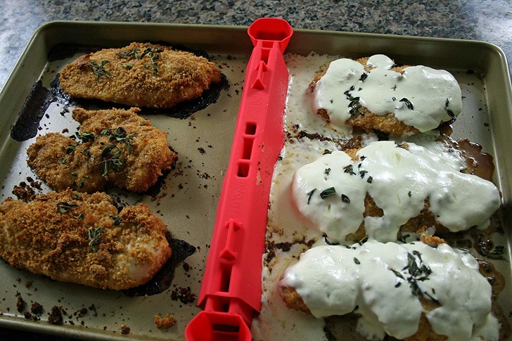 Таке просте пристосування дозволяє легко розміщувати на деко для запікання відразу кілька страв — рибу та м'ясо, з соусом і без, два види гарніру. Більше немає необхідності вибирати або витрачати в два рази більше часу на приготування їжі.