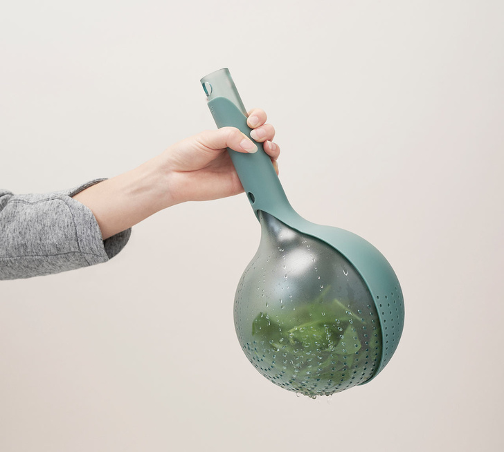 Друшляк Drop («Крапля») від італійського дизайнера Вивианы Дегранди дозволяє швидко і, що важливо, економно вимити і висушити трави, овочі, фрукти, ягоди. В ручку заливається вода, потім друшляк варто кілька разів струсити, і ось вже чисті і сухі продукти готові до вживання. Купити друшляк можна тут.