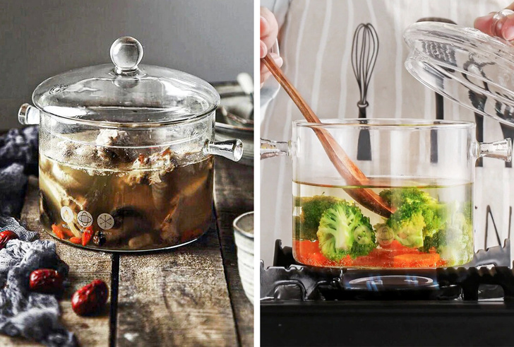 По-перше, це красиво, а по-друге, така посуд швидко нагрівається, дозволяє стежити за кипінням, не знімаючи кришки, а ще вона стійка до різних кислотних і лужних продуктів.