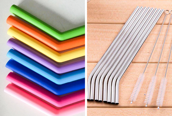 Одноразові соломинки, через які так приємно пити багато напої, забруднюють навколишнє середовище. Вихід простий — поміняти їх на багаторазові. Можна вибрати соломинки зі сталі або з гнучкого силікону. Чистити такі соломинки дуже легко: до них додається спеціальна щіточка.