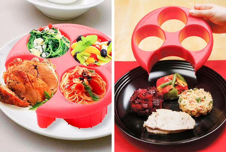 За допомогою такої форми легко контролювати не тільки те, скільки ми їмо, але і повноцінність раціону. Бонус — красива сервіровка.