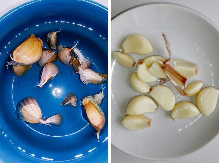 Порада: якщо вам потрібно очистити велику кількість часнику, розділіть голівку на зубчики і замочіть в холодній воді приблизно на півгодини.