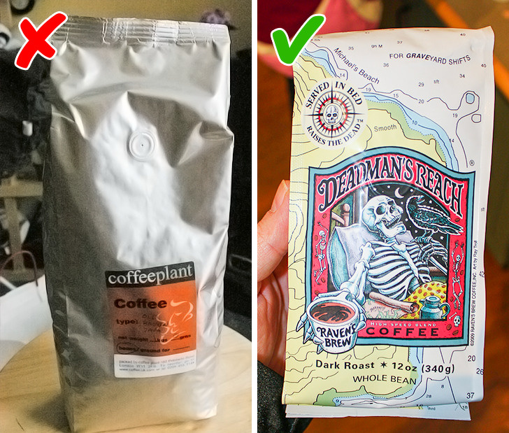 Каву краще купувати в маленькій пачці, тому що великі упаковки призначені для ресторанів і кафе. Секрет у тому, що кавові зерна швидко втрачають аромат. Через два тижні кави по суті перетворюється в коричневу рідину.