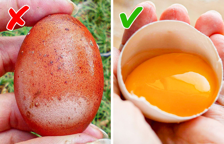 Вицвілий шкаралупа говорить про те, що птах стара. Поздовжні борозни і зморшки означають, що несучка хворіла на бронхіт, а шорсткі цяточки свідчать про поганому харчуванні.