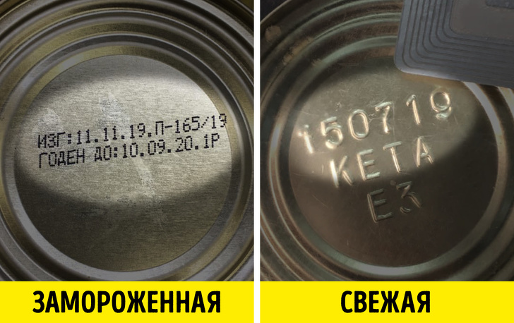 Потім подивіться на дату фасування, зазначеної на маркуванні. Дуже важливо, щоб ікра була проведена і упакована саме в періоди нересту червоної риби. Така риба нереститься, як правило, влітку і ранньої осені: наприклад, горбуша метає ікру в липні, кета — у серпні, а кижуч — у вересні. Якщо ікра розфасована в цей період — значить, вона не піддавалася заморожуванню.