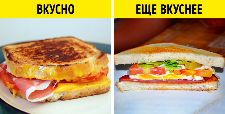 - Сендвіч трикутної форми вважається більш смачним, ніж прямокутний. У ресторанах і кафе до сендвичів подають соус, а трикутний бутерброд зручніше вмочати в ємність з ним, після чого класти в рот.