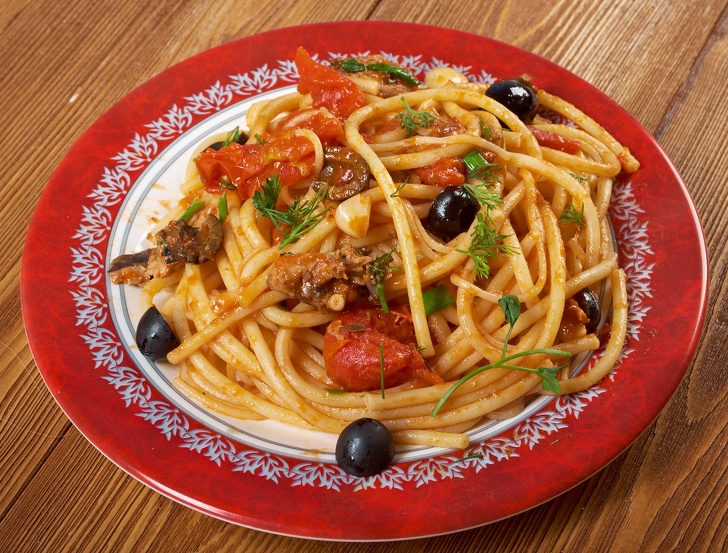 - «Паста путанеска» в перекладі означає не що інше, як «паста в стилі занепалої жінки». Блюдо з'явилося в середині минулого століття при звичайних обставинах: в один з ресторанів перед закриттям заглянула голодна компанія. Хлопці попросили зробити пасту з будь-якими інгредієнтами, у господаря знайшлася пара оливок, томатів і трохи каперсів. Назва пасти говорить про те, що її можна приготувати як би між справою. Але є й інша легенда: дами легкої поведінки готували пасту на швидку руку в перервах між прийомом відвідувачів.