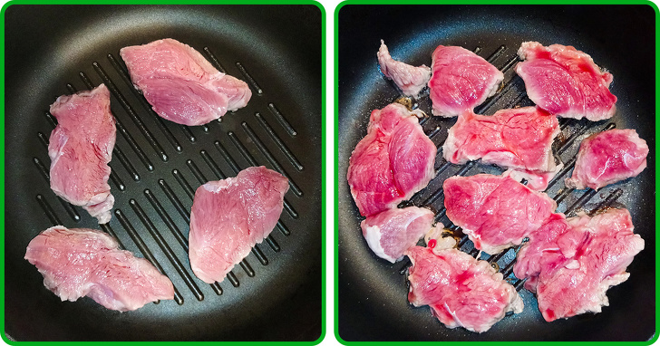 Один з найбільш популярних рад — обсмажувати м'ясо маленькими порціями, щоб воно «запечаталось», не початок тушкуватися і не втратила вологу. Насправді це не так важливо, якщо ви будете піддавати яловичину або свинину подальшій обробці, — втрата соку все одно неминуча. Якщо хочете її мінімізувати і отримати гарну корочку — колер, як кажуть у професійному середовищі, — розжарте сковороду як можна сильніше, і тоді кількість шматочків практично ні на що не вплине.