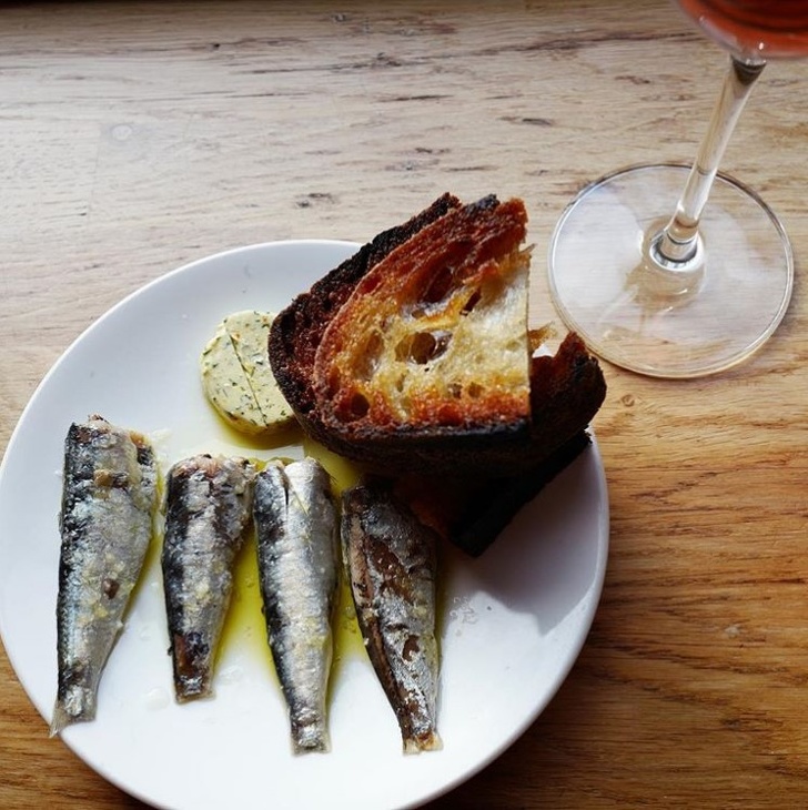 Сардини з підсмаженим хлібом і маслом сельдереевым