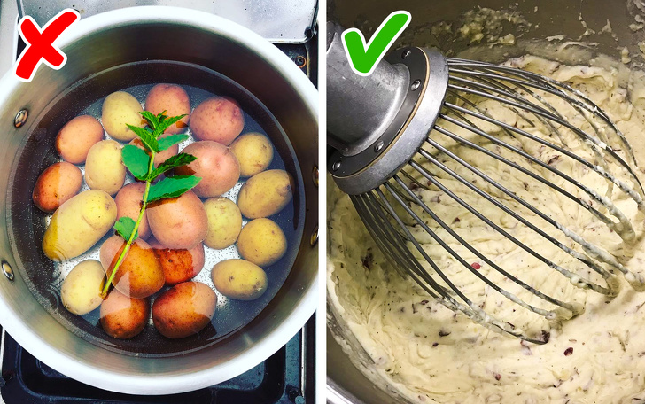 13. Щоб пюре вийшло смачним, не потрібно зливати бульйон, а краще відразу варити картоплю в молоці і маслі