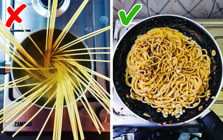 17. Макарони не будуть склеюватися, якщо готувати їх на сковороді в холодній воді