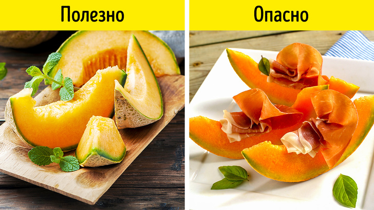 Існують історичні свідчення того, що люди гинули від вживання дині, поєднуючи її з іншими продуктами під час застілля. Сучасна селекція динь не дасть загинути, а от неприємні стану може забезпечити.