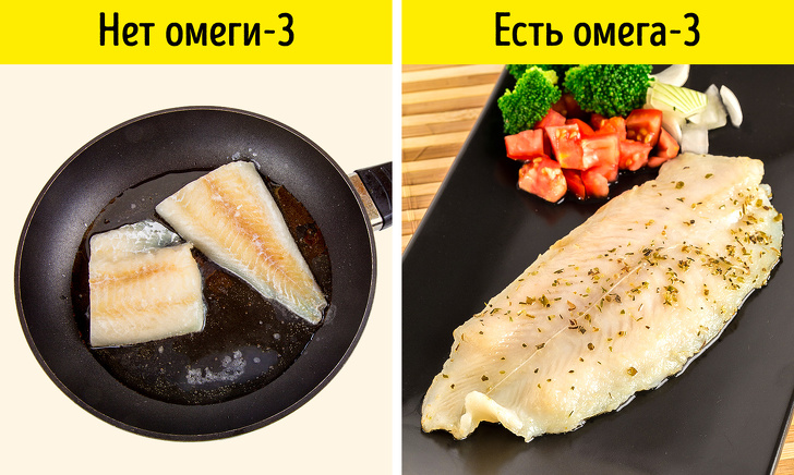 Риба та олія — головні джерела важливих жирних кислот. У рибі багато омеги-3, а в маслі — омега-6. Кислоти сприятливо впливають на суглоби, стан шкіри і волосся, роботу серця. Однак якщо рибу смажити на олії, омега-3 зникає під впливом омега-6. Мало того, при надлишку в організмі омеги-6 прискорюється процес старіння клітин. Тому найкращі робити гриль, запікати рибу у фользі або готувати в пароварці. Вчені відзначають, що баланс цих кислот в організмі часто буває порушений: виникає нестача омеги-3 і надлишок омега-6.