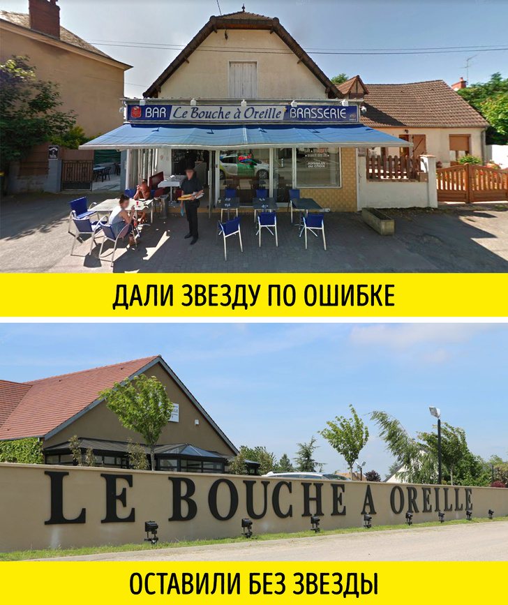 - У 2017 році Мішлен помилково присудив зірку маленькому кафе для робочих в провінційному містечку Бурж. Його переплутали з респектабельним паризьким рестораном Le Bouche à Oreill, який знаходиться на вулиці зі схожою назвою. За ті 2 дні, що едальня з клейончастими скатертинами на столах була в рейтингу на сайті Мішлен, її відвідала рекордна кількість гостей, а телефон розривався від дзвінків охочих забронювати столик.
