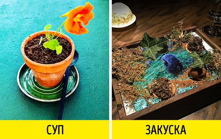 - Мішленівські ресторани приділяють багато уваги незвичайної подачі страв. Не дивуйтеся, якщо в ресторані Noma в Копенгагені вам принесуть картопляний суп, який виглядає як квітковий горщик. Але, мабуть, далі за всіх в цьому відношенні пішов ресторан Quince з Сан-Франциско. Страва під назвою "Собака в пошуках золота" тут подають на айпад з включеним екраном, який служить тарілкою.