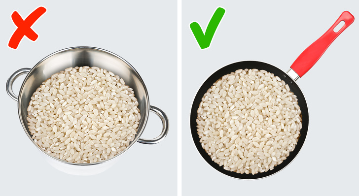 Круглий рис складно приготувати так, щоб він був розсипчастим: найчастіше при варінні він перетворюється в кашу. Тому спробуйте попередньо злегка обсмажити його на рослинному маслі з додаванням невеликої кількості вершкового. Як тільки рис втратить прозорість, додайте води так, щоб вона покривала крупу на 2-3 см, і варіть рис на повільному вогні близько 15-20 хвилин.