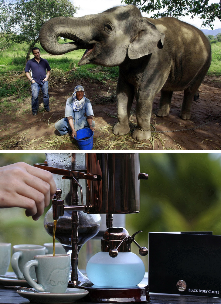 В даний час найдорожчий сорт кави — це таїландський Black Ivory, або «Чорна слонова кістка». На кавових плантаціях збирають звичайну арабіку і згодовують зерна... слонам. Кажуть, що шлункова кислота тваринного роз'їдає білок в зернах і прибирає всю гіркоту. Звичайний слон переробляє зерна за 15-30 годин, а для того, щоб отримати 1 кг кави, тварина повинна з'їсти близько 33 кг сирих зерен арабіки, змішаних з іншими продуктами його щоденного раціону. Переварені зерна потім ретельно вибираються з екскрементів, промиваються і сушаться, щоб потім стати дуже дорогим кави вартістю від $ 1 100 за 1 кг. А ви зважилися б побавитися таким напоєм?
