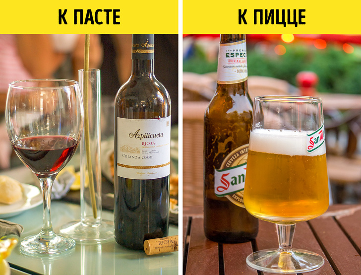 А ось італійці не завжди віддають перевагу вину, приміром, до піци прийнято подавати тільки пиво, та іноземці, які замовили вино, дивують персонал закладів. Вино — додаток до пасти.